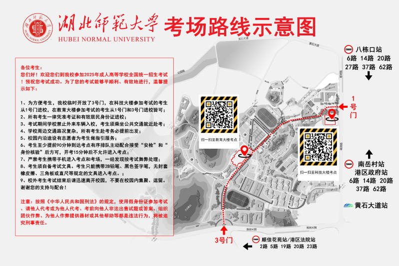 2024年湖北省成人高校招生考试湖北师范大学考点考生赴考须知