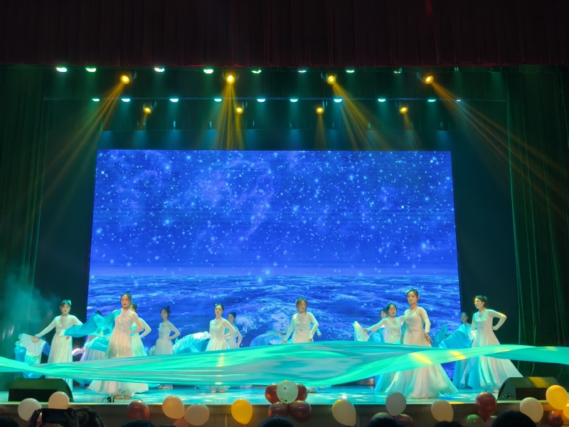 啦啦操、拉丁舞、爵士舞、戏剧舞蹈串烧轮番登台,动感的节奏、多变的舞蹈与整齐的动作,展现出舞蹈艺术的多元魅力与学子们昂扬的青春活力。朗诵《这盛世如您所愿》抒发对时代的感悟,器乐演奏《美丽的神话》带领观众沉浸经典,情景剧《运动秀》与小品《“宝”证不上当》各展所长,幽默的情节让节目兼具艺术美感和现实教育意义。舞蹈《有我》以肢体语言诠释青春担当,歌舞《万疆》以恢弘的表演深刻表达了师生对祖国的深情礼赞,彰显出青年一代的责任与风采。